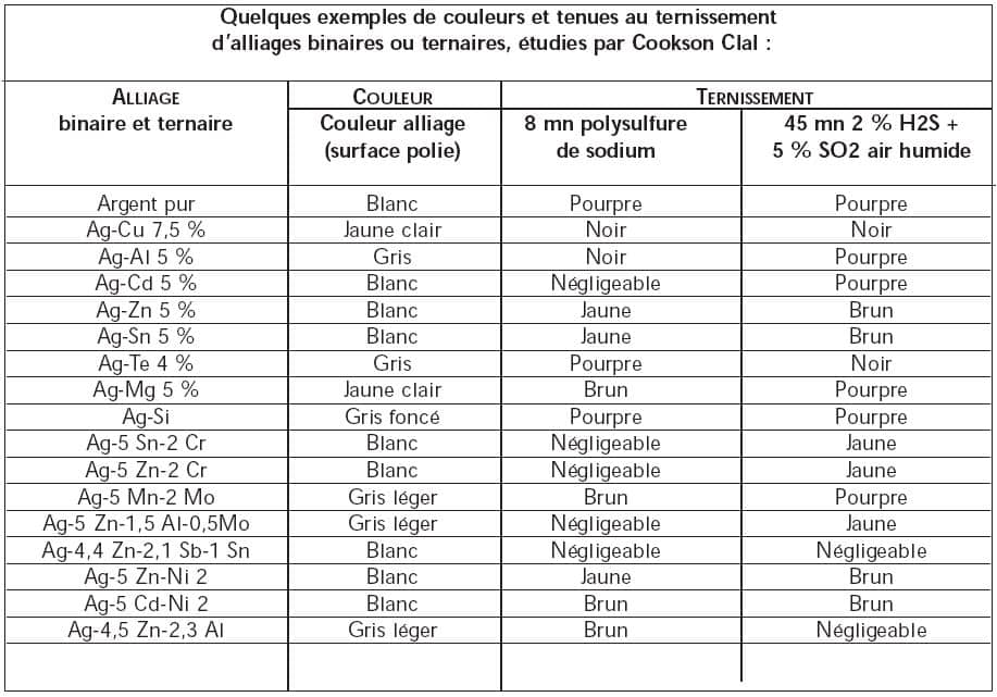 - Affirmer une couleur s’approchant de l’argent pur, tout en restant apte à la mise en forme et à la résistance.